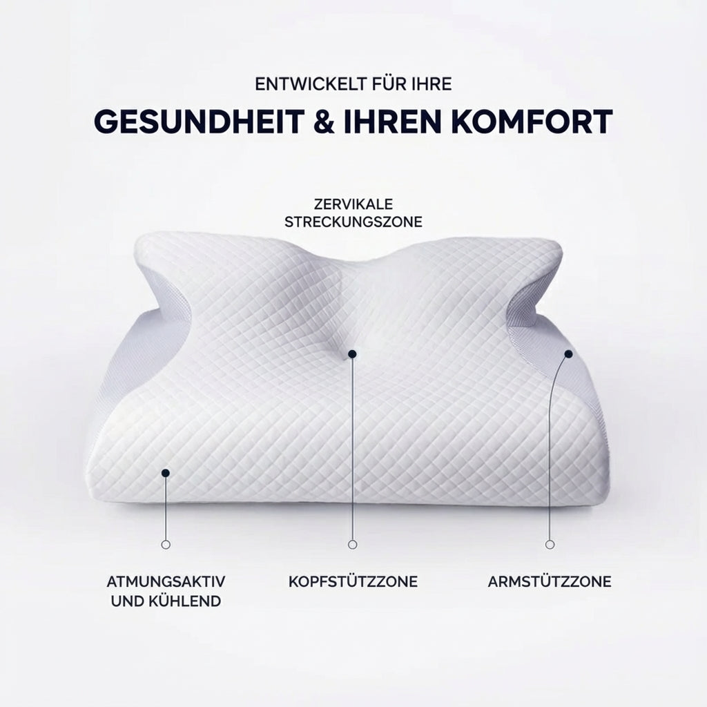 Seine ergonomische Form unterstützt eine gute Ausrichtung der Atemwege und fördert eine ruhige, gleichmäßige Atmung während der Nacht.